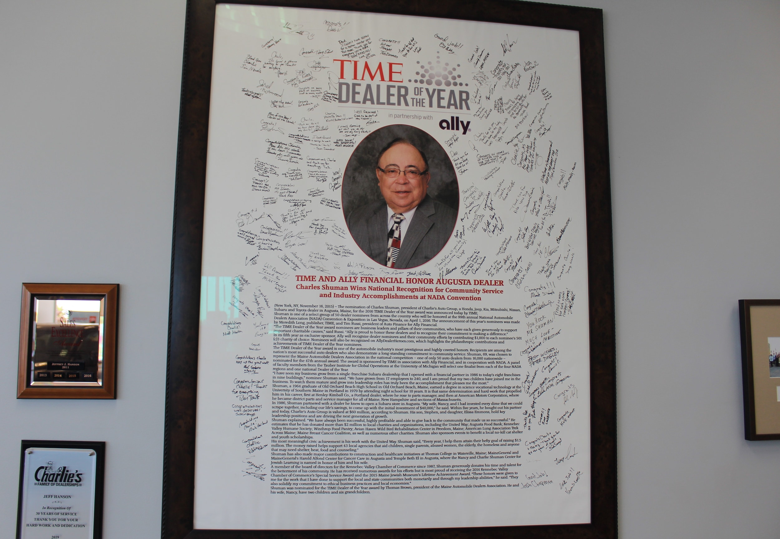 You can read more about Charlie's and the history of Charlie's Motor Mall by the Kennebec Journal in this special celebrating Charlie's 30th Anniversary.Even though Charlie, Steve and Elissa don't personally meet every customer, the commitment to exceptional customer service can be seen in all our employees. They all stand behind Charlie and you!
